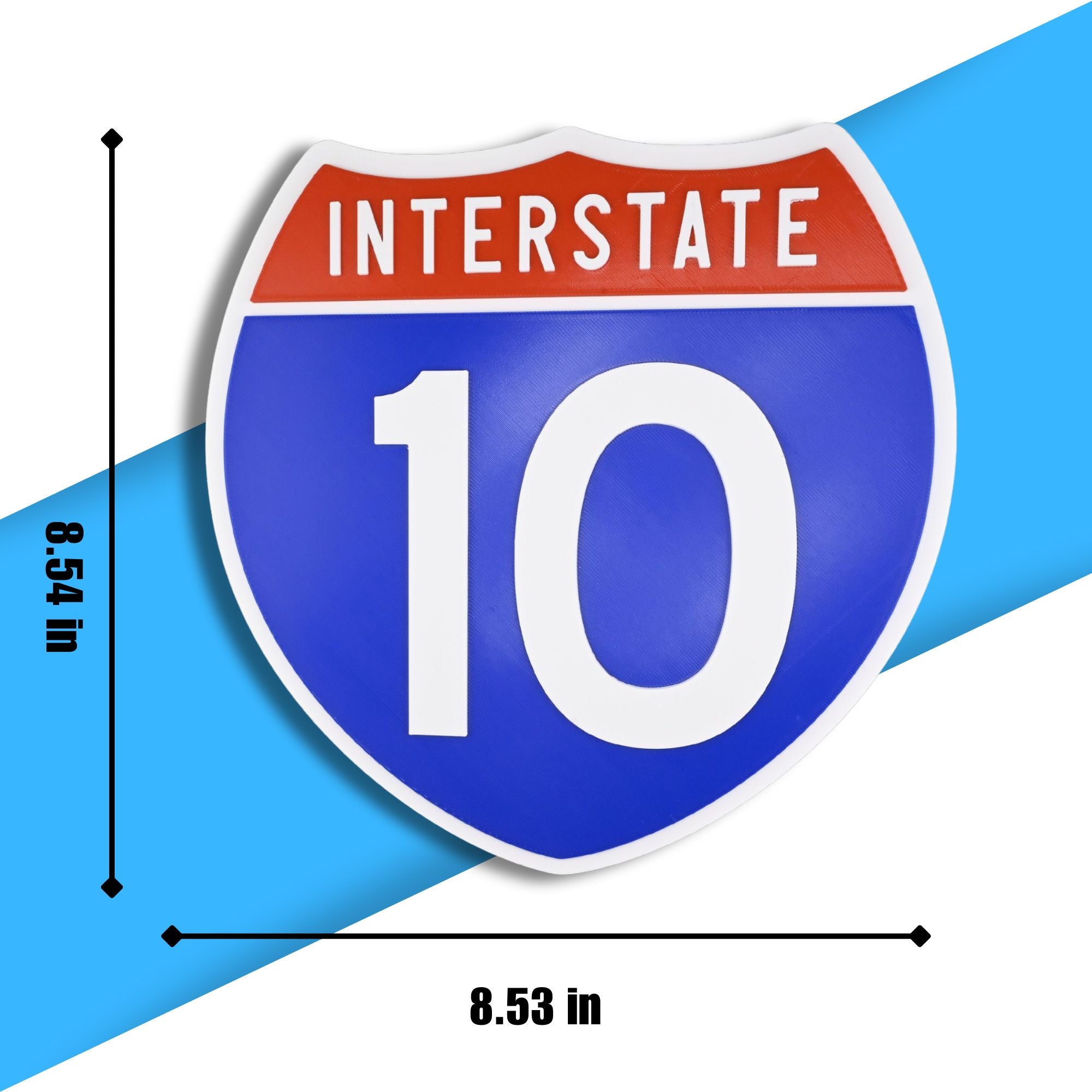 Interstate 10 Road Sign Replica | 8.53 x 8.54 Inches | Blue with White and Red