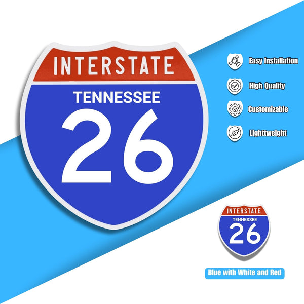 Interstate 26 Road Sign Replica | 8.53 x 8.54 Inches | Blue with White and Red