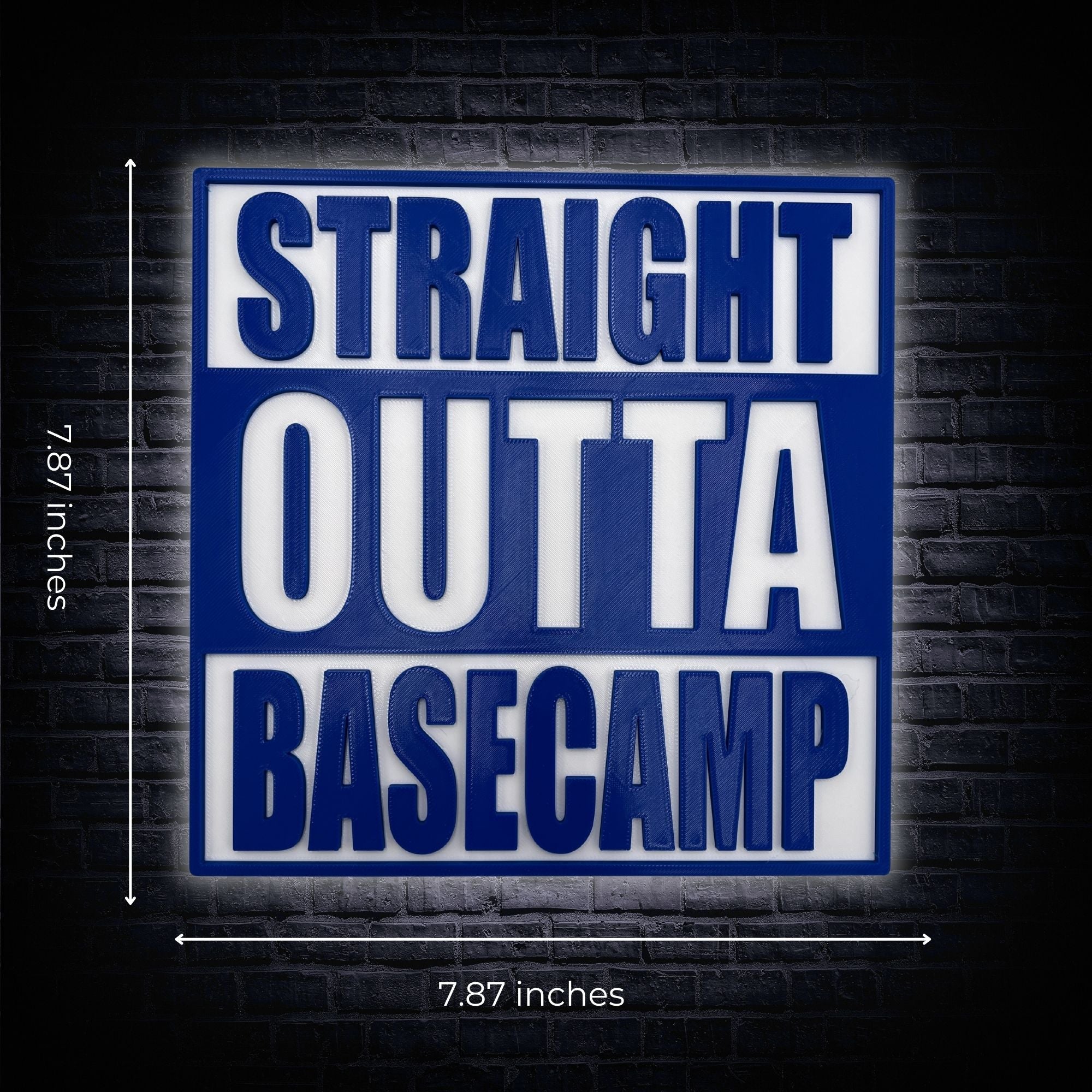 Featuring the bold and recognizable "Straight Outta" typography paired with "Basecamp," this sign makes a memorable and impactful statement.