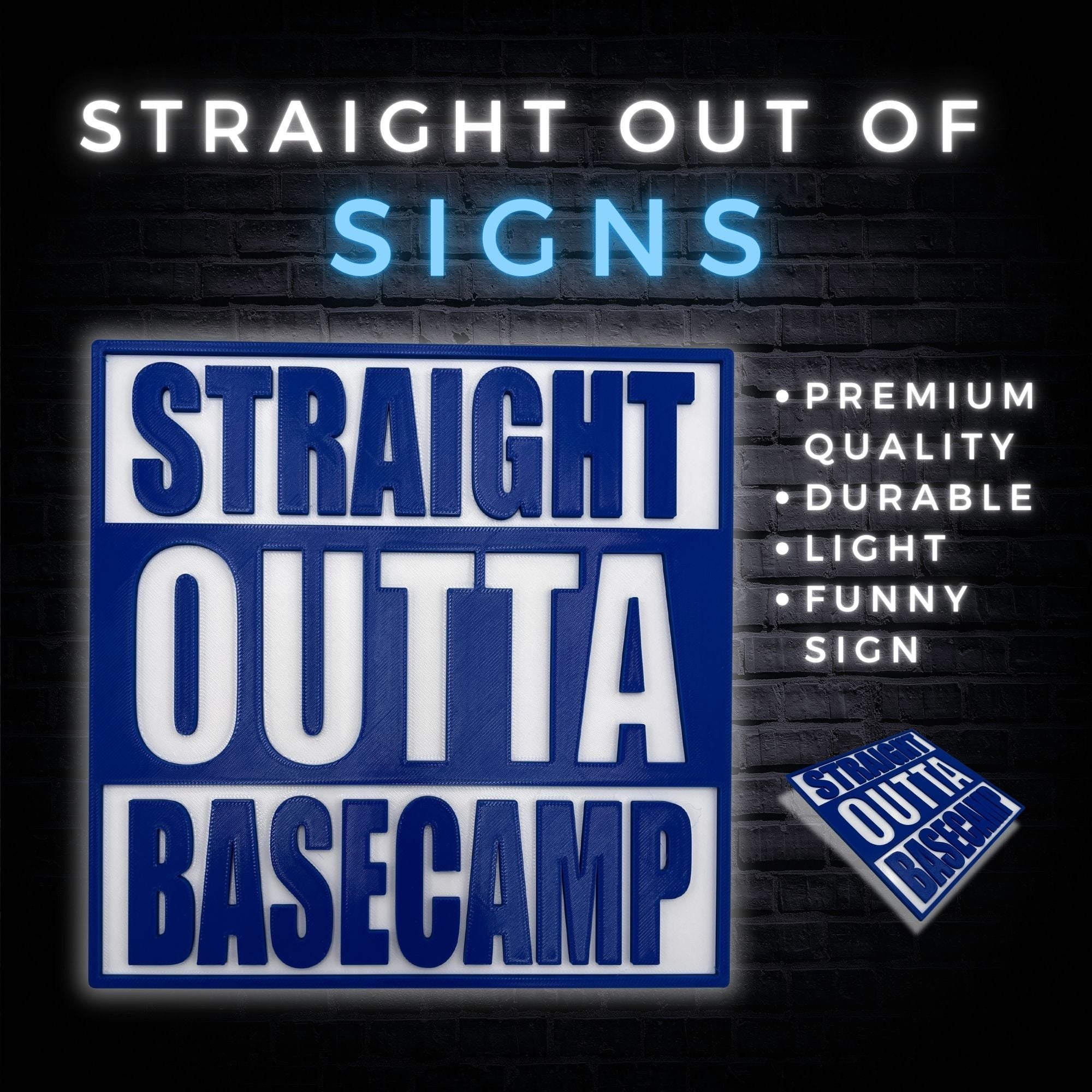 The "Straight Outta Basecamp" Sign isn’t just decor—it’s a celebration of adventure, resilience, and the joy of exploring the unknown. Whether you’re using it to personalize your space or gifting it to a fellow outdoor enthusiast, this sign delivers humor and style in one bold package.