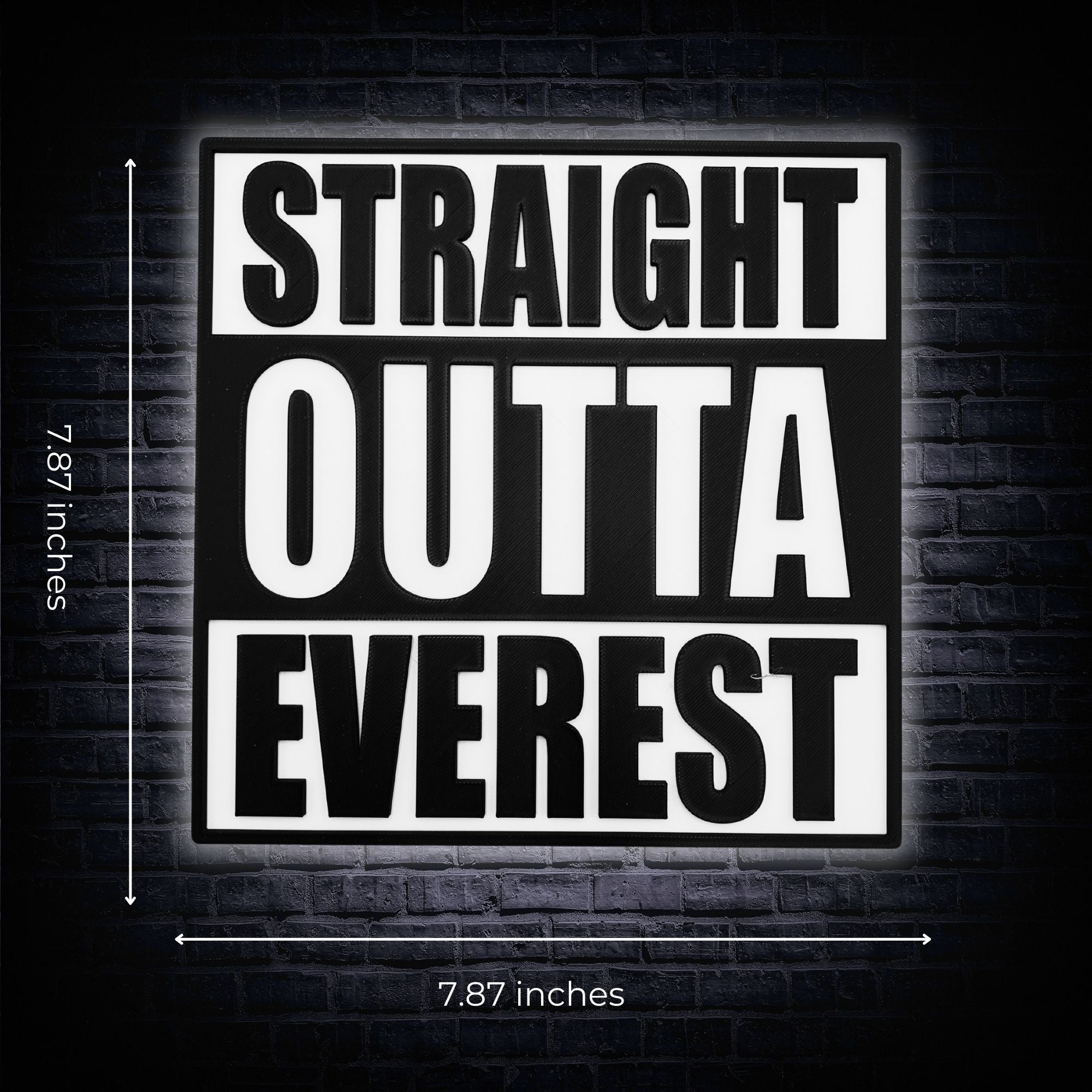 The bold "Straight Outta" typography paired with "Everest" creates a striking and memorable look, perfect for adventurers and dreamers.