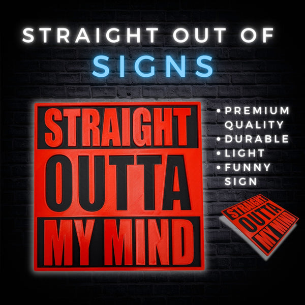 The "Straight Outta My Mind" Sign isn’t just a piece of decor—it’s a playful reminder that life doesn’t have to be taken too seriously. Perfect for gifting or personal use, it adds humor and personality to any space, making it a conversation starter and a mood booster.